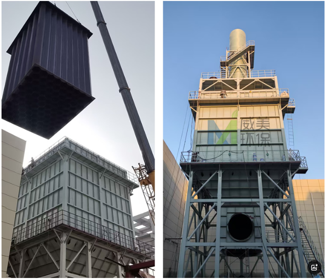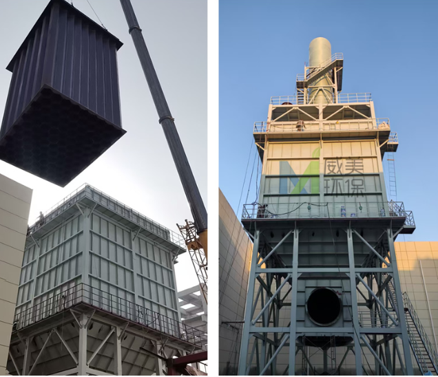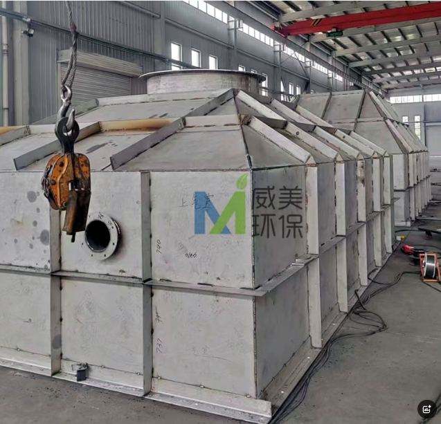 河北威美環保負責該濕電除霧器設備本體(陽極系統、陰極系統、上下氣室、氣體分布板、防擺框架、高低壓電器及配電柜等)的供貨及安裝。該設備處理煙氣量≤220000m³/h,<70℃,下進上出型。