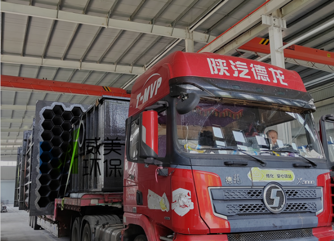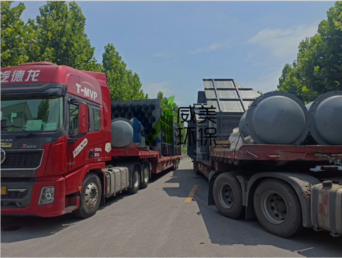 氰尿酸尾氣治理濕電除霧器裝車完畢,準(zhǔn)備出發(fā)