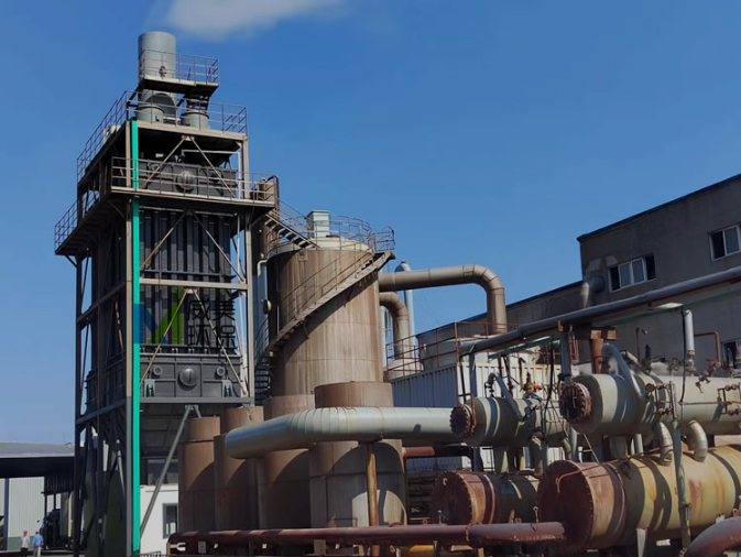 同廠區(qū)內(nèi)兩臺濕電除霧器 右側(cè)為前段時(shí)間調(diào)試的氯化鈣尾氣治理除霧設(shè)備