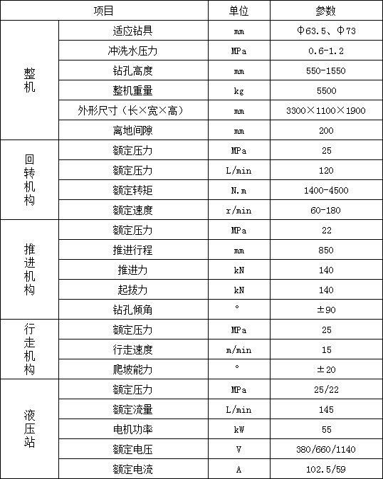 3. 履帶行走,大大提高移鉆、穩鉆的效率,顯著減輕工人的體力勞動強度;