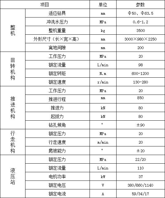1. 履帶行走,大大提高移鉆、穩(wěn)鉆的效率,顯著減輕工人的體力勞動強度;